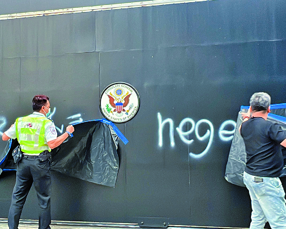 Chinese officials often condemn the US for hegemony and double standards over issues such as human rights and matters relating to Taiwan, which China claims sovereignty over.This is not the first time that the US consulate in Hong Kong was vandalized.