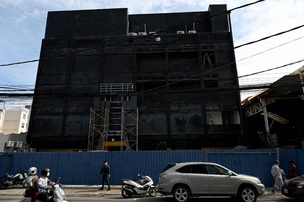 The burned-out 6969 nightclub in Phnom Penh. AFP