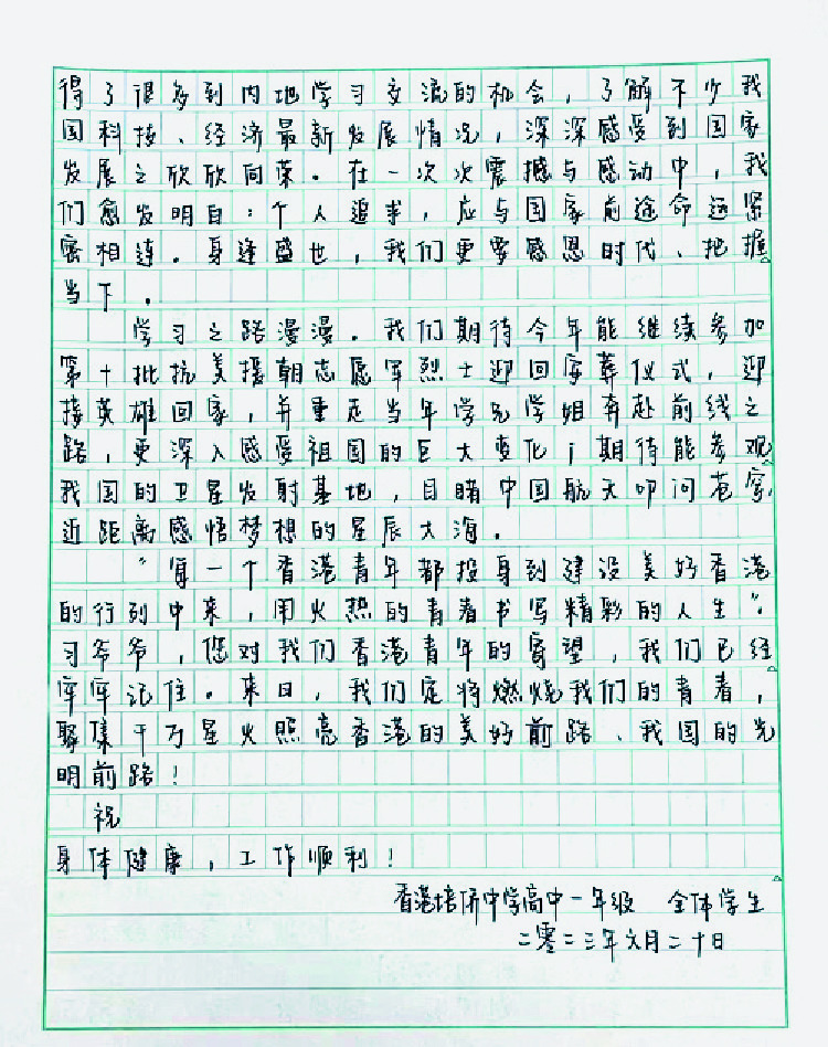 Xi told four students at Pui Kiu Middle School that he was pleased to know that they had taken part in activities including interacting with Chinese astronauts.