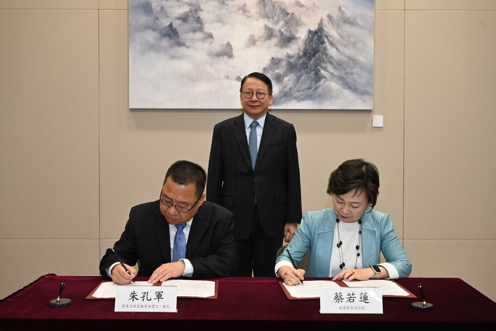 Chief Secretary Eric Chan Kwok-ki was present for the signing by Secretary for Education Christine Choi Yuk-lin and the director-general of the provincial education department, Zhu Kongjun.