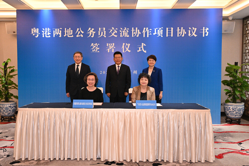 The bureau and the Hong Kong and Macao Affairs Office of Guangdong signed an agreement in Guangzhou on civil service staff exchanges and collaborations between Hong Kong and the Greater Bay Area.
