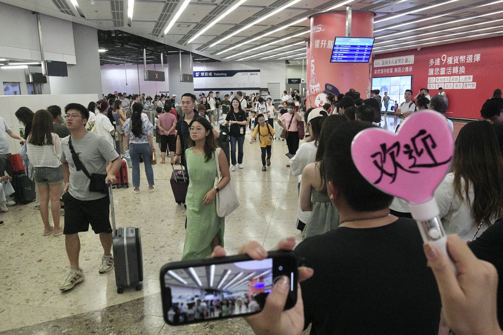 Among them, some 217,800 people entered via Lo Wu and Lok Ma Chau ports, about 77,000 traveled via the Hong Kong-Zhuhai-Macao Bridge, 58,300 people took the high-speed rail and 43,000 flew to Hong Kong.