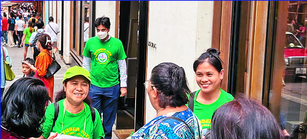 Volunteers handed out green ribbons in Central yesterday to mark World Mental Health Day after four-years' absence due to the pandemic.