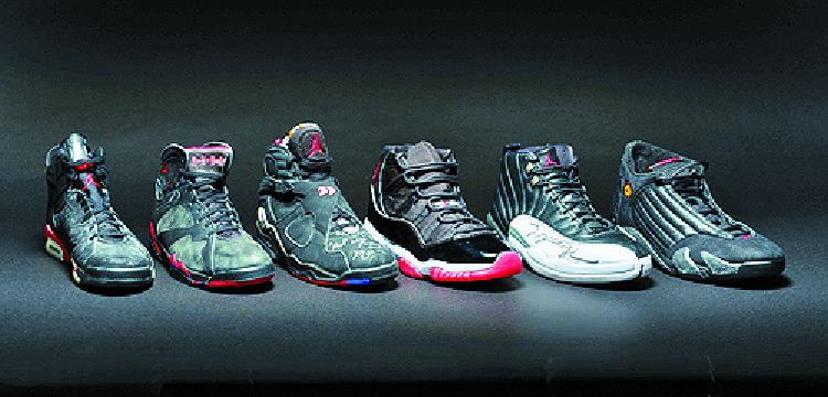 Michael Jordan gave the separate shoes to Chicago Bulls communications executive Tim Hallam, after decisive games that helped the club win six NBA championships.