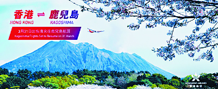 Hong Kong Airlines will resume direct flights to Kagoshima in Japan from March 31 after a four-year hiatus.The airline said the flight will offer passengers with a key network connecting northern and southern Kyushu. "The route is conveniently timed to coincide with the cherry blossom season," the airline said.