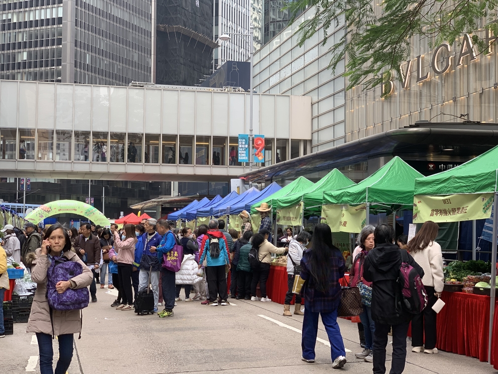 People converged on Chater Garden and Chater Road to buy products such as vegetables, fruits, aquatic products and sauces.