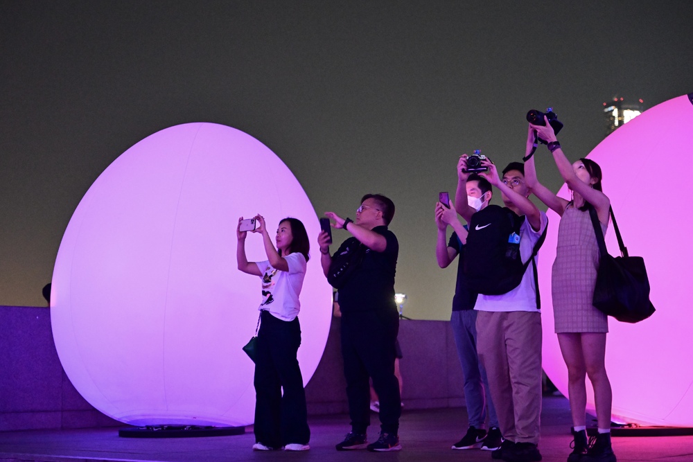 Some 200 colorful, luminous ovoids at Tamar Park and the Central and Western District Promenade - created by art collective teamLab - have attracted an overwhelming response, with tickets to the free exhibition this week already fully booked, resulting in some visitors being limited to the booking-free areas.