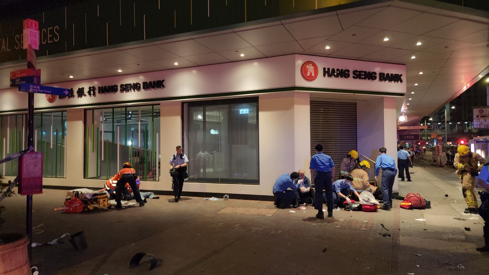 After the collision, Chan and Cheung were both thrown off the bike and landed in front of a bank around 20 meters away. Both immediately lost consciousness.