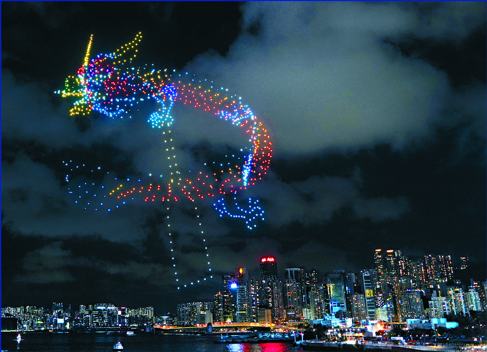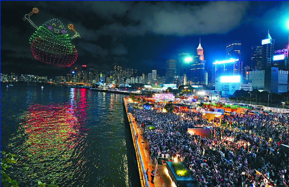 Thousands flocked to the Wan Chai harborfront at 8 o'clock last night to enjoy the drone show that lit up the sky in celebration of the Dragon Boat Festival.