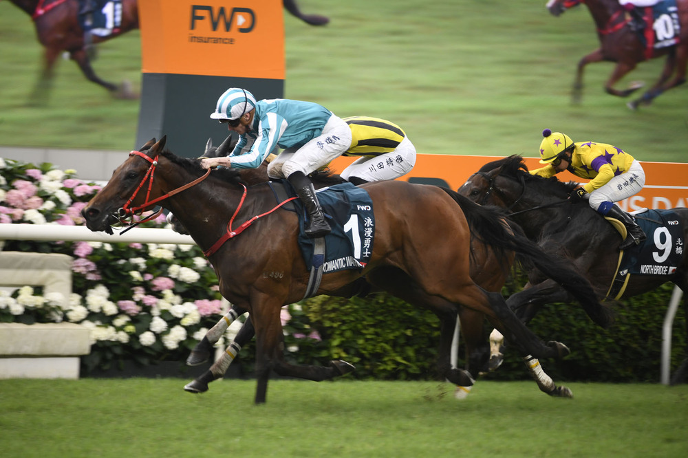On his return to Hong Kong, he added three Group 1 wins to his tally: the LONGINES Hong Kong Cup (2000m), the Citi Hong Kong Gold Cup (2000m) and the FWD QEII Cup (2000m). Romantic Warrior ended the season with a bang, taking top honors in the G1 Yasuda Kinen (1600m) in Tokyo. His five Group 1 wins are a record for a single season by a Hong Kong horse.