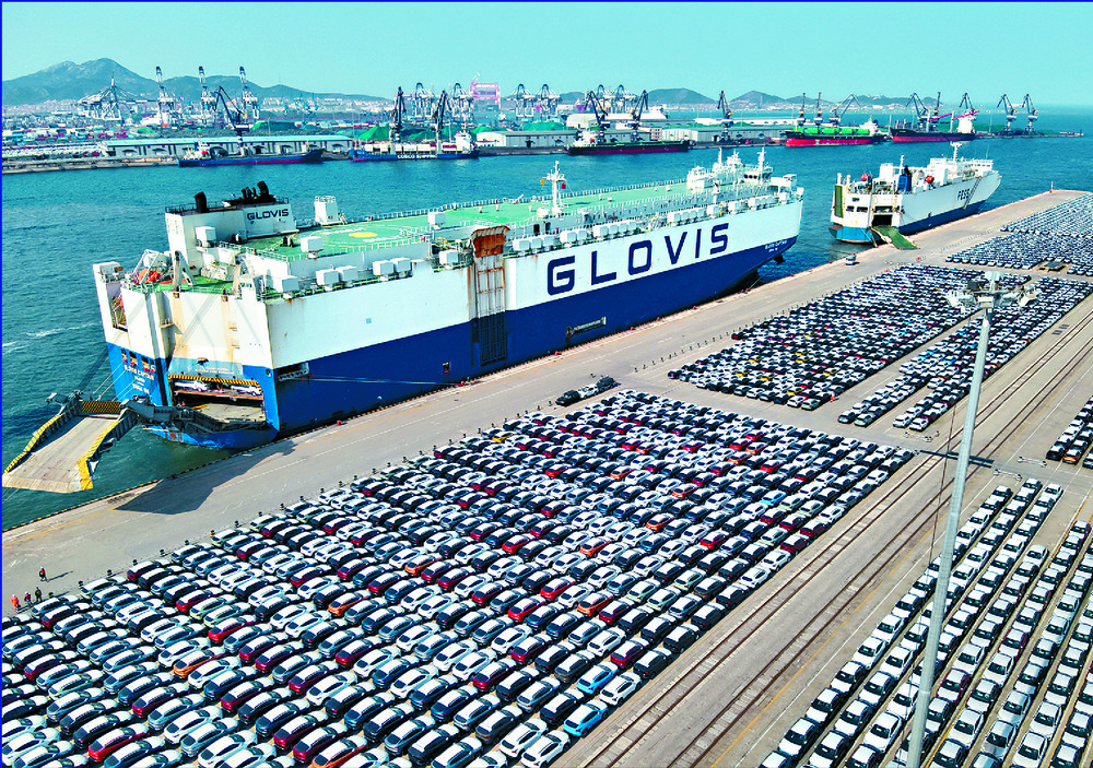 Vehicles to be loaded for export at Yantai Port in Shangdong. Among the concerns of global investors are the brewing trade battles between China and the US. XINHUA