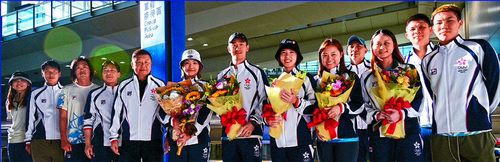 Eunice LamTse and mixed doubles partner Jordan Tang Chun-man were welcomed by supporters at Hong Kong International Airport upon their return with the rest of the badminton team yesterday morning.