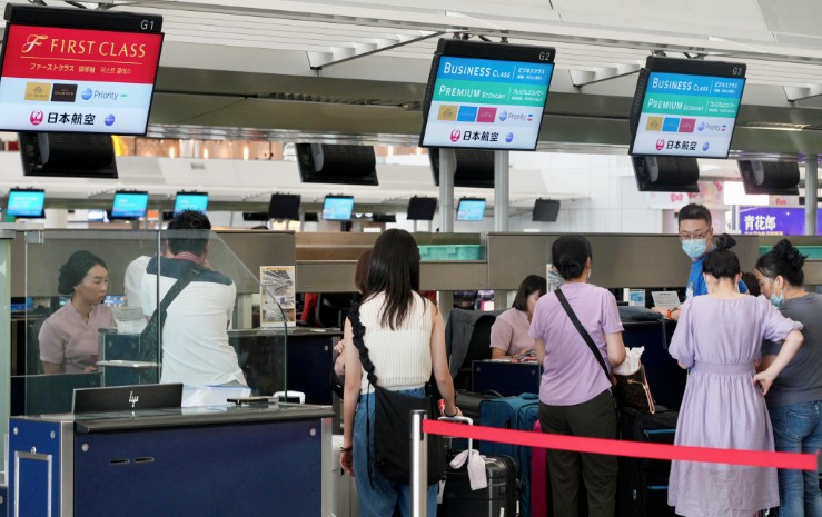 However, a number of Hong Kong tourists decided to go ahead with their travel plans and departed from the Hong Kong International Airport to Japan yesterday, including a family of four heading to Fukuoka.