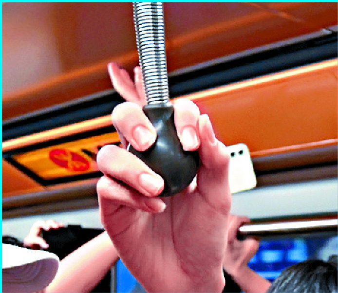 Excited passengers enjoy the ride on the retro-themed MTR train, equipped with ball-shaped straphangers, as it sets off from Choi Hung station. Enthusiasts record the moment the doors open to admit passengers. SING TAO