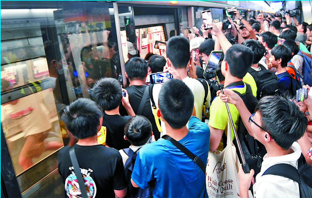 Law, now a university student, also showed up to celebrate.Apart from the retro setting, some carriages had posters showcasing the city's metro development through characters from the classic Hong Kong comic My Boy.