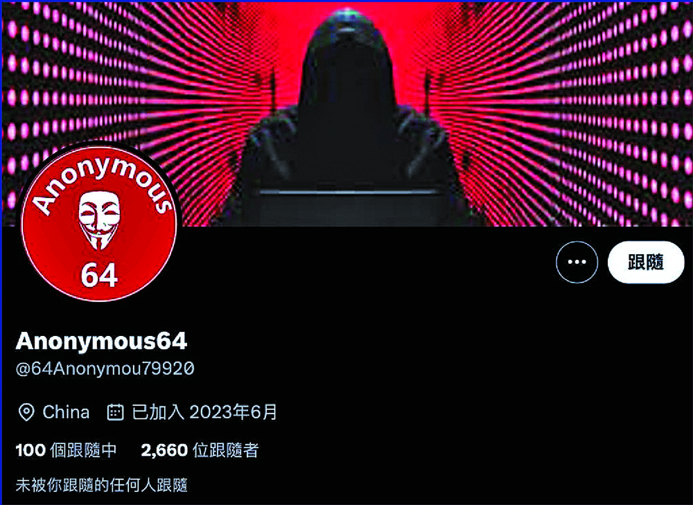 Since the beginning of the year, Anonymous 64 - which the ministry said belonged to Taiwan's cyber warfare wing - has sought to upload and broadcast "content that denigrates the mainland's political system and major policies," on websites, outdoor screens and network TV stations, it said on a blog post.