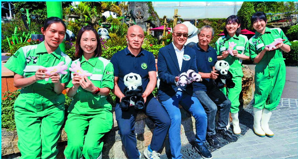 Howard Chuk, center, with the team caring for the giant panda cubs at Ocean Park.