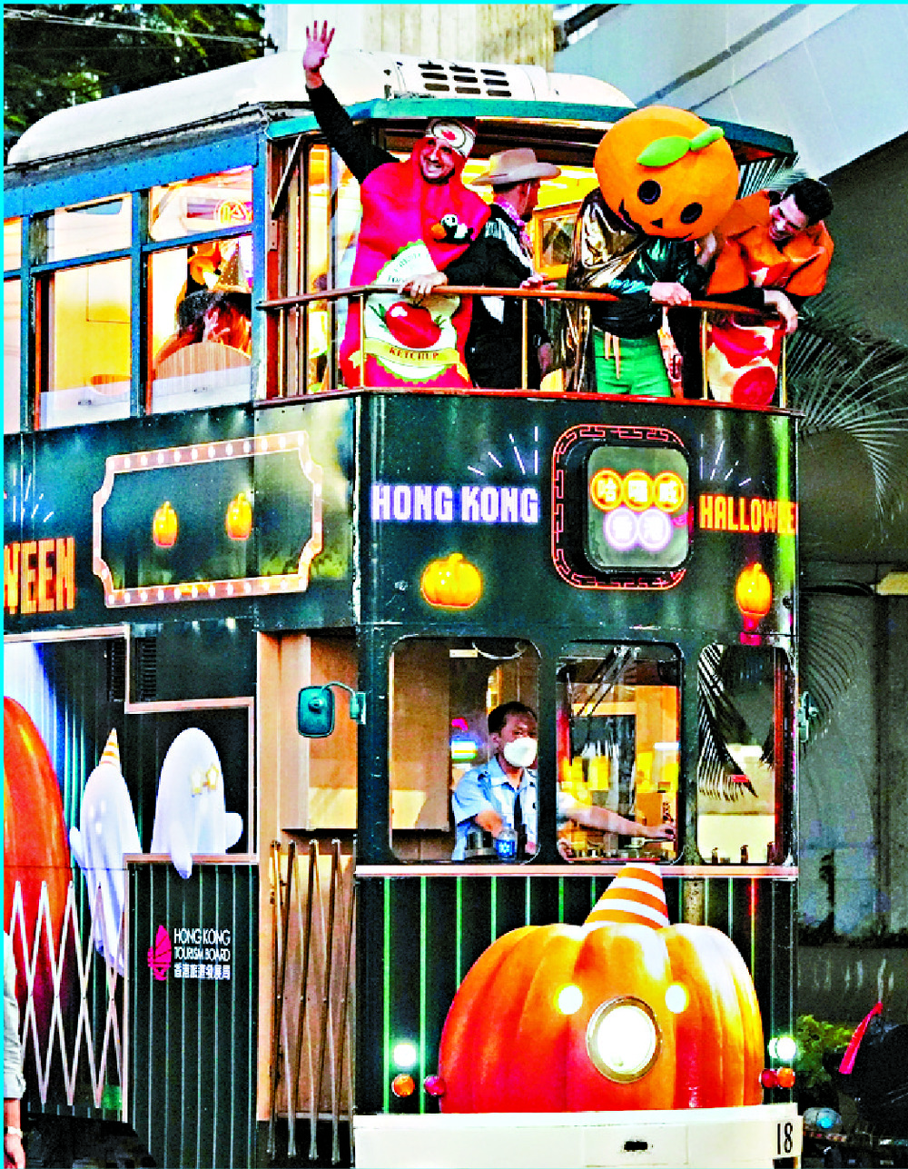 In related news, the Hong Kong Tourism Board sent out a "ghostly party tram" between 6pm and 10pm yesterday, roaming the streets from Witty Street, Sai Wan, to Causeway Bay. It also deployed a pumpkin-themed ice cream truck to hand out free ice cream at Central Ferry Pier 8.