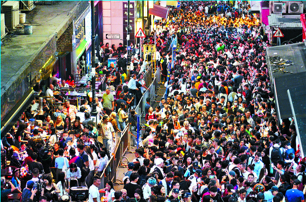 Revelers descend on Lan Kwai Fong to take part in Halloween festivities. SING TAO
