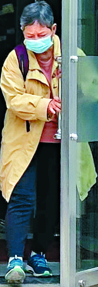 Chung Kim-wah's wife leaves Tin Shui Wai police station.