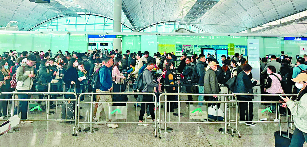 Many outbound travelers were families hoping for bonding time despite the significant increase in airfare and hotel expenses, which were 50 percent higher than on ordinary weekdays.A father surnamed Wong heading to Hokkaido, Japan, said: "We are mainly accompanying the children to Hokkaido to see the icebreaker ship. We stayed in Hong Kong for Christmas so we opted to travel abroad for this holiday."