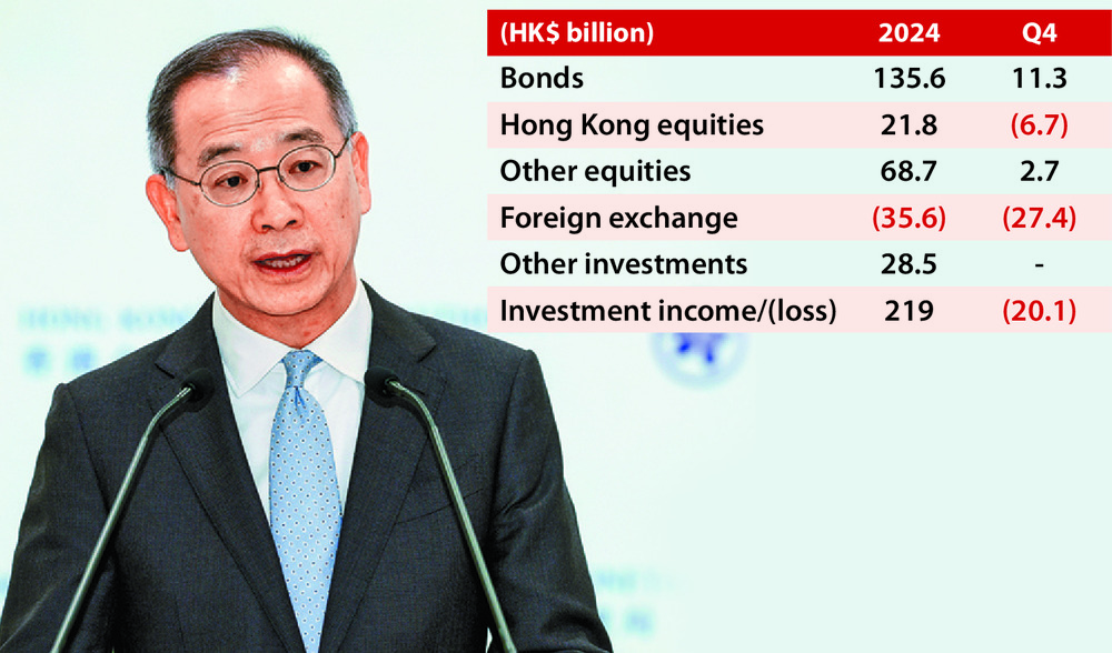The Exchange Fund, which backs the Hong Kong dollar, posted a 3 percent year-on-year drop in investment income to HK$219 billion last year after recording a loss of HK$27.4 billion from foreign exchange in the last quarter.