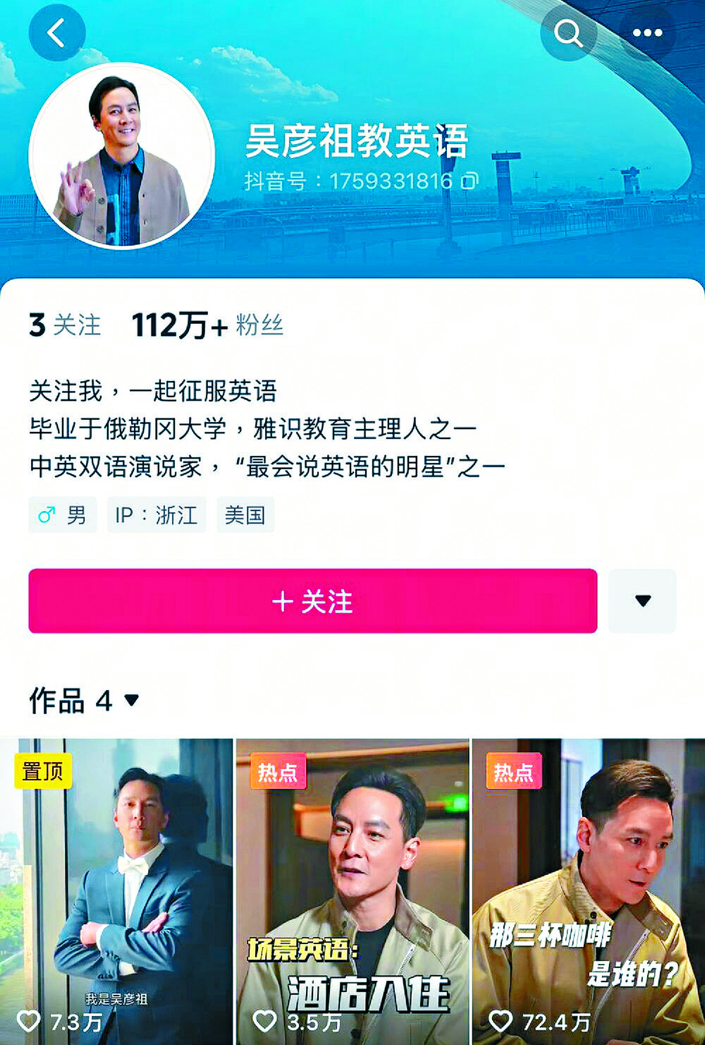 Many mainlanders said the price for learning English with the "attractive" and "handsome" star is reasonable, while adding that the interactive course is easy to complete and at the same time enjoyable.However, some have told a Beijing-based media outlet that Wu only appears for five minutes in each lesson and that the course takes advantage of Wu's reputation for promotion.