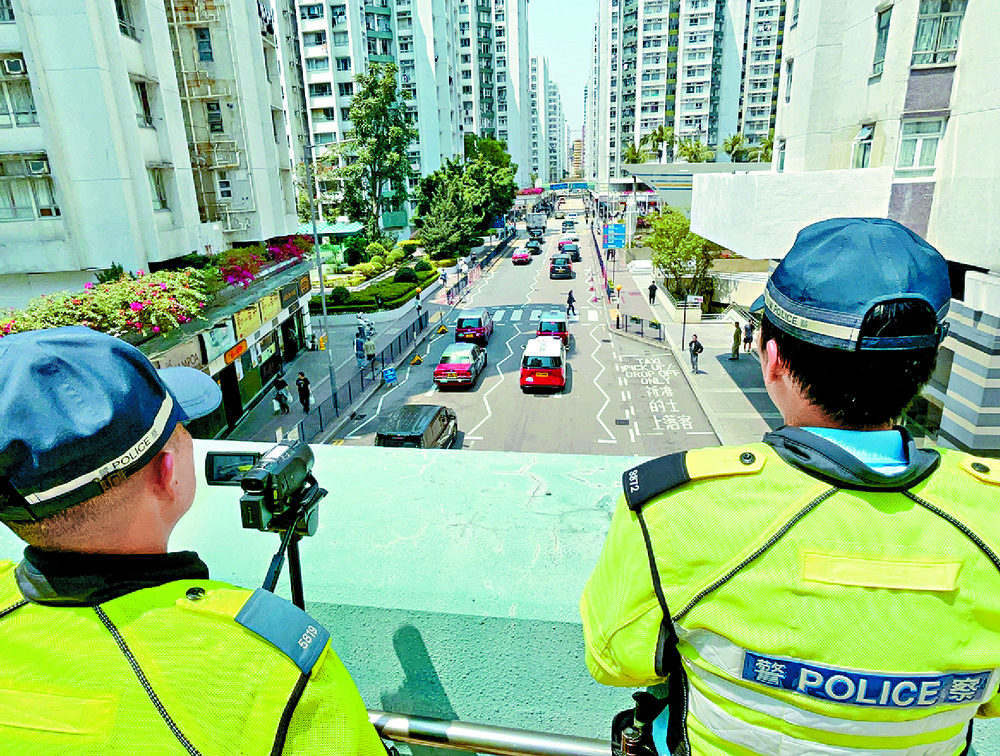 Officers intercept jaywalkers and check the streets for speedsters. SING TAO