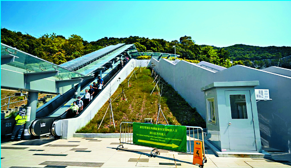 The new Cape Collinson-San Ha Columbarium features 200-meter-long, two-way escalators linking San Ha Street to Cape Collinson Road, enabling grave sweepers to travel uphill in just seven minutes.