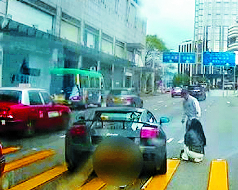 A female pedestrian crossed the road as the sports car reached the Sheraton Hong Kong Hotel & Towers despite a red man signal.