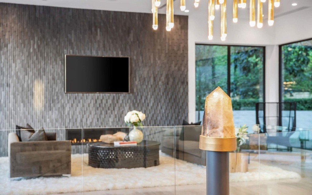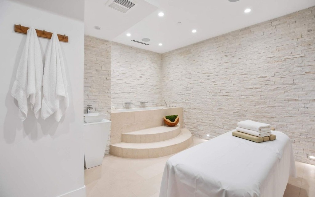 It also features a massage room filled with white quartz, designed for crystal therapy enthusiasts, and a gravel meditation circle on the rooftop.