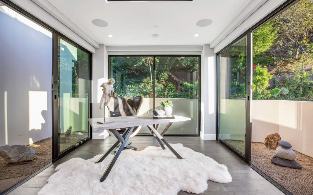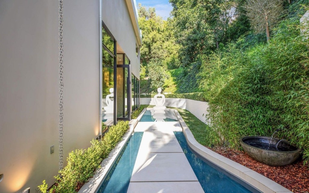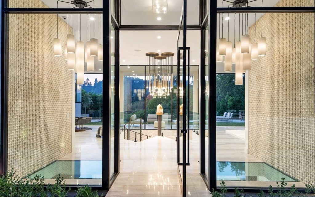 Located on a hillside, the mansion offers panoramic views of the Beverly Hills and breathtaking sunsets.