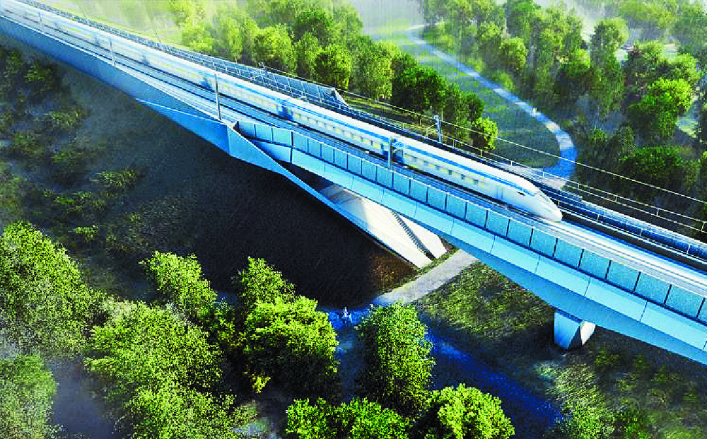 The imposing viaduct is the most complex and eye-catching section of the controversial new high-speed line.