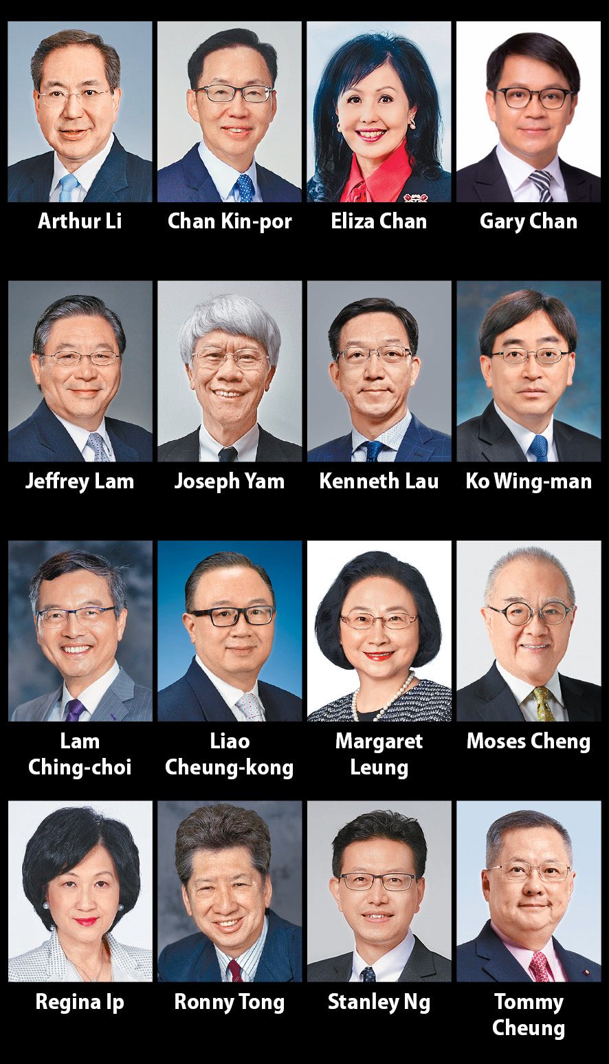 They are solicitor Eliza Chan Ching-har, 65, the election agent of Lee's campaign; former Hang Seng Bank chief executive Margaret Leung Ko May-yee, 70; and former secretary for food and health Ko Wing-man, 65.