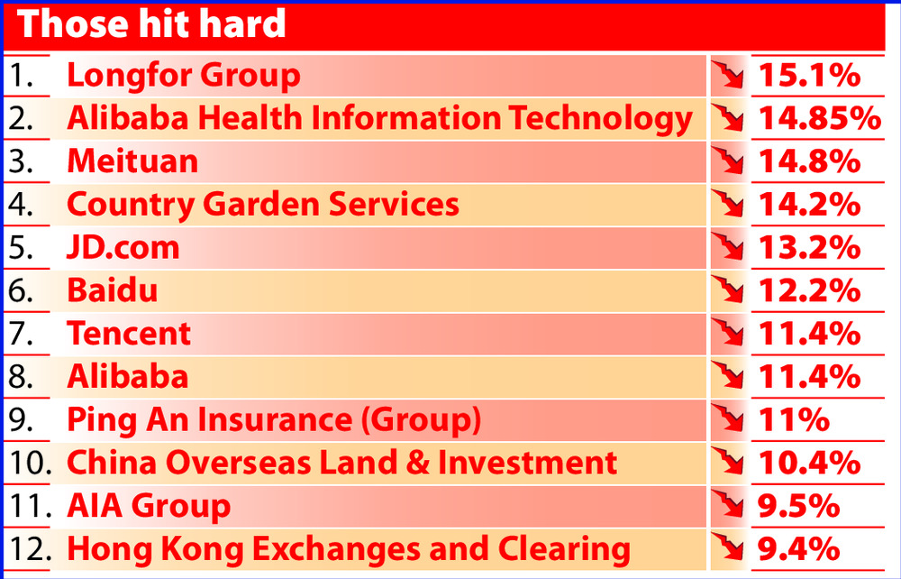 Since the beginning of this year, the HSI has plummeted more than 35 percent, making it the worst performer among major stock markets in the world. The Nasdaq Composite Index has lost more than 30 percent of its value.
