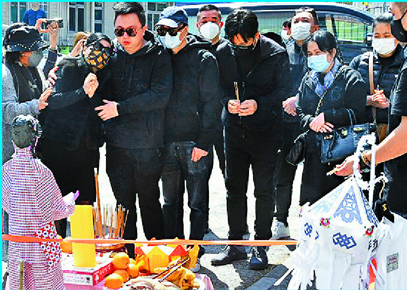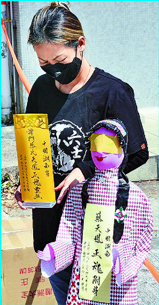 Choi's family - her mother, husband Chris Tam and parents-in-law - were at the mortuary for two hours to identify her remains before going to the murder scene in Lung Mei Village for a ritual to pay their respects on the seventh day of her death, as she was apparently killed last Tuesday.