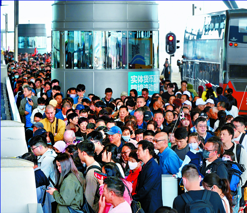 The first cycling race on the Hong Kong-Zhuhai-Macao Bridge led to long queues at the HK Port. XINHUA, SING TAO