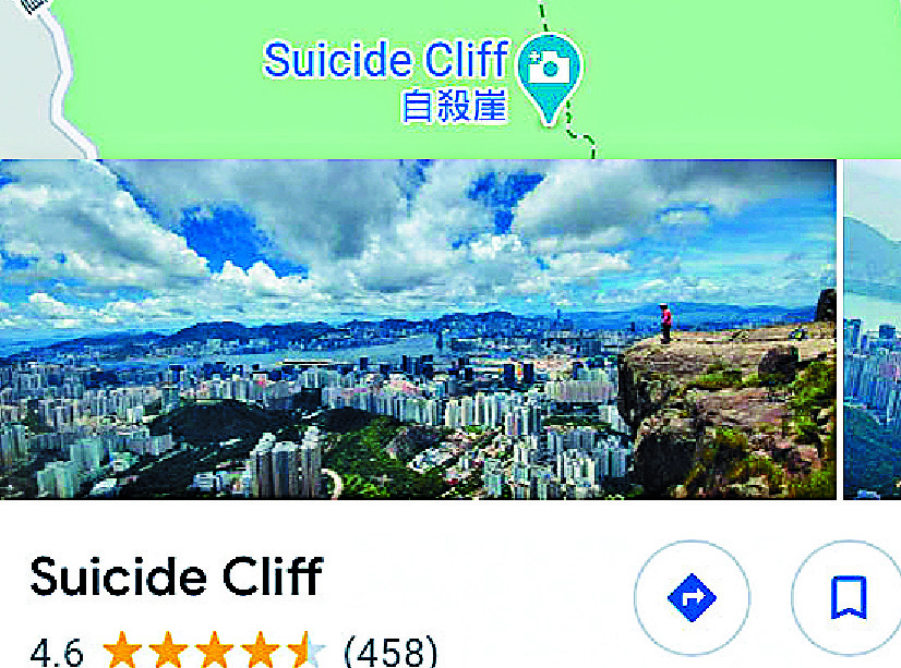 If you ask for Google to recommend things to do in Hong Kong, it highlights "Suicide Cliff" as a "tourist attraction."