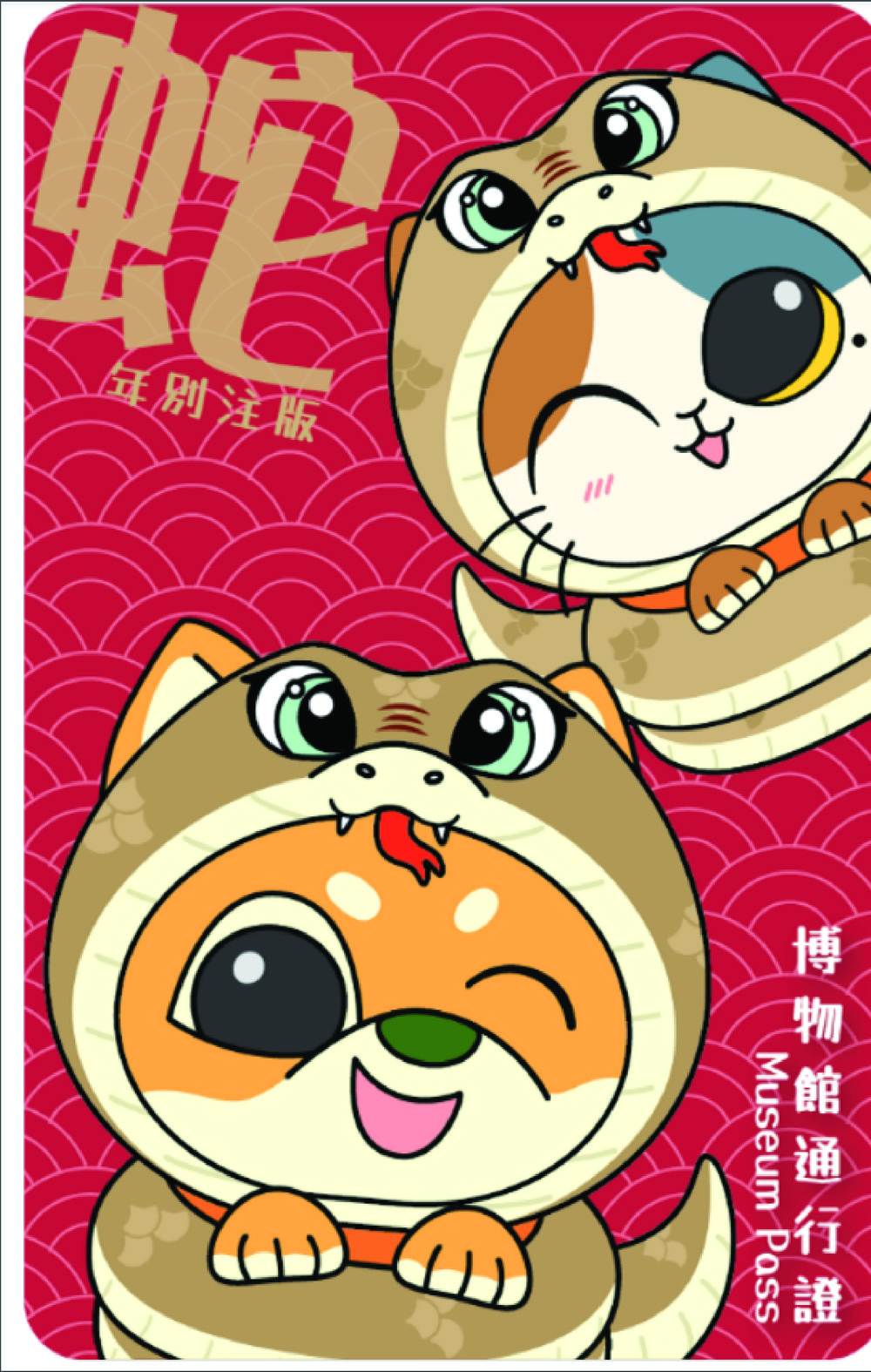 Two designs for the special edition include one with LCSD mascots Enggie Pup and Artti Kitty dressed in new-year costumes and a collection from the Hong Kong Heritage Museum - Year of the Snake Calendar Design by renowned Hong Kong designer and artist Hon Bing-wah. Museum passes are valid for 12 months from the date of issue, priced at HK$100, HK$50 and HK$25 for family pass, individual pass and concessionary pass respectively.