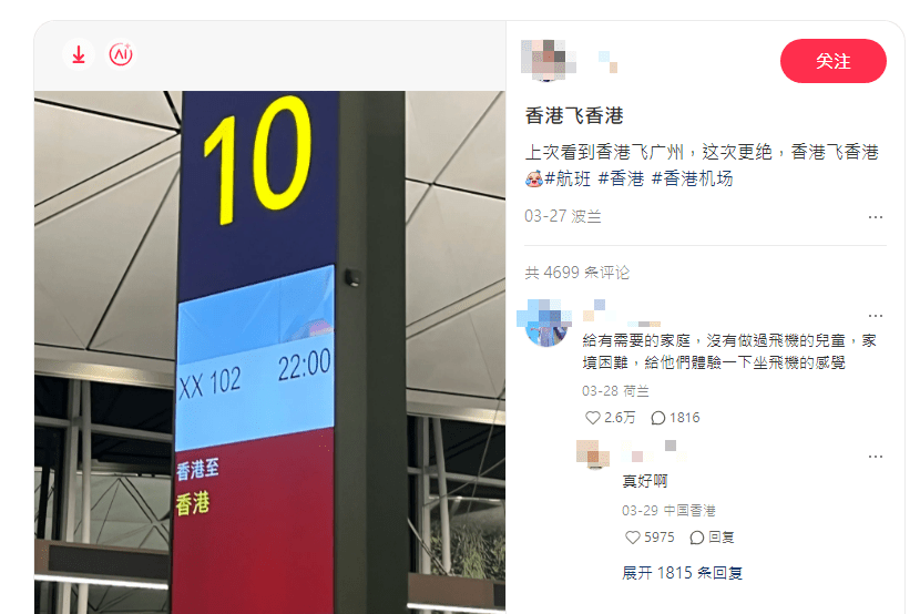 Mainland netizens were left puzzled after spotting a “Hong Kong to Hong Kong” flight at the airport, only to discover a heartwarming explanation behind it.