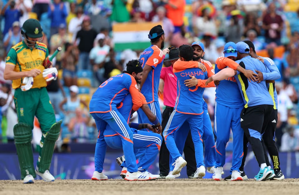 India won the Twenty20 World Cup title on Saturday after prevailing by seven runs in a heart-stopping final against South Africa to end their 11-year wait for a global title.