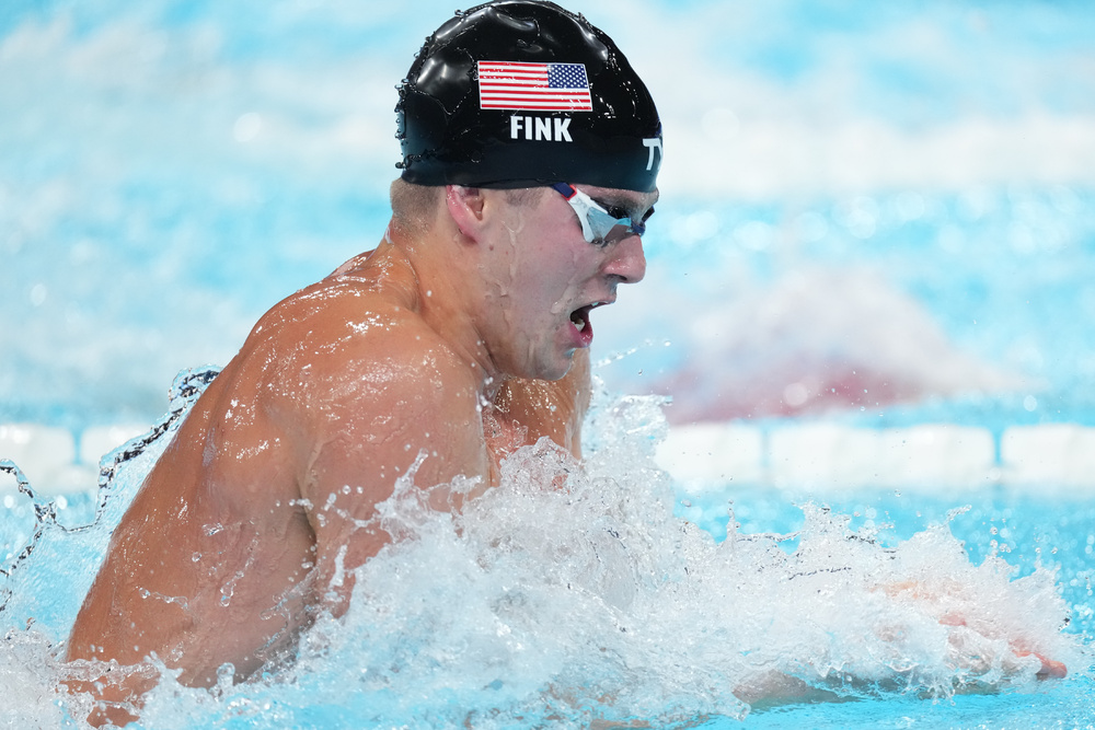 Nic Fink of the United States competes during the men's 100m breaststroke final of swimming at the Paris 2024 Olympic Games in Paris, France, July 28, 2024. (Xinhua)