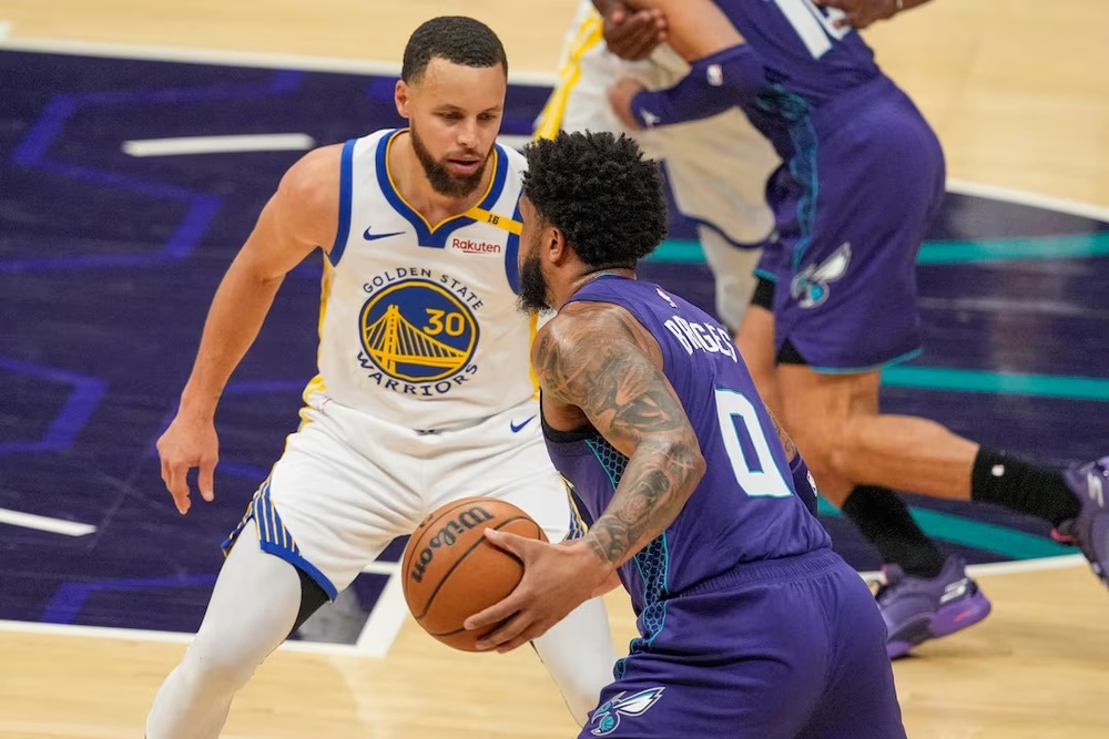 The Warriors outscored Charlotte 14-4 in about the first 41/2 minutes of the fourth quarter to build their lead to 100-81. Hield and Podziemski both connected on two 3-point shots during that stretch.