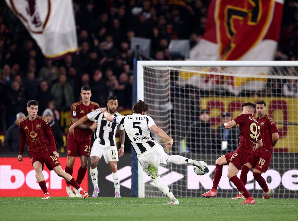 Locatelli broke the deadlock for the visitors five minutes before halftime with a shot from outside the area and Roma substitute Shomurodov levelled soon after the break from a rebound, blasting the ball in off the crossbar from close range.