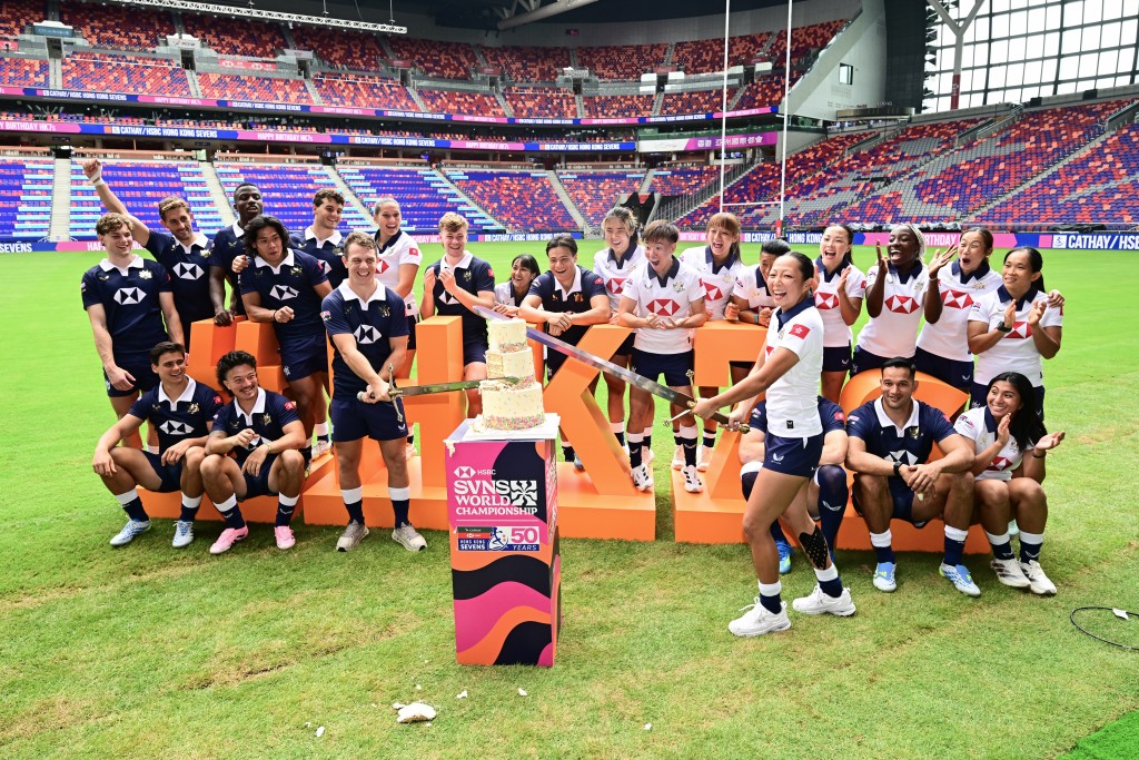 In a symbolic moment, Hong Kong men’s captain Sebastian Brien and women’s captain Chloe Chan used silver swords to cut a celebratory cake, highlighting the significance of the occasion.