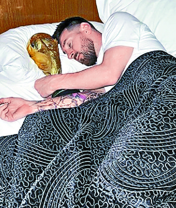Lionel Messi, top and inset, keeps the World Cup trophy close, even in sleep at Argentine Football Association headquarters, as up to six million people turn out to celebrate.