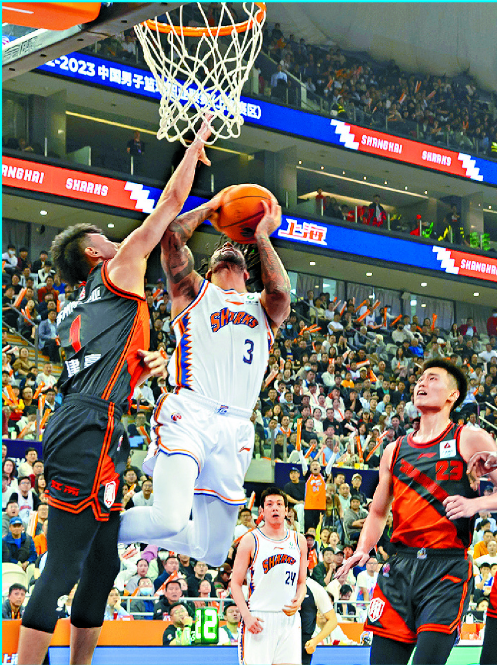 The Shanghai Sharks overtook the Jiangsu Dragons in the last two minutes of a CBA playoff game on Friday after the Dragons lost possession of the ball multiple times.