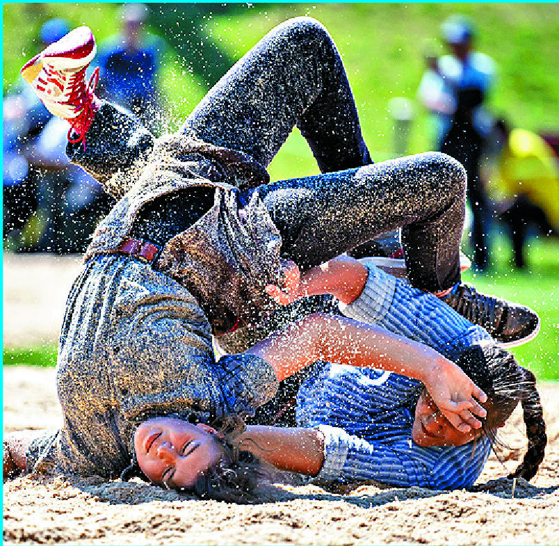 Once reserved for men, Swiss wrestling is now seeing female participation. AFP