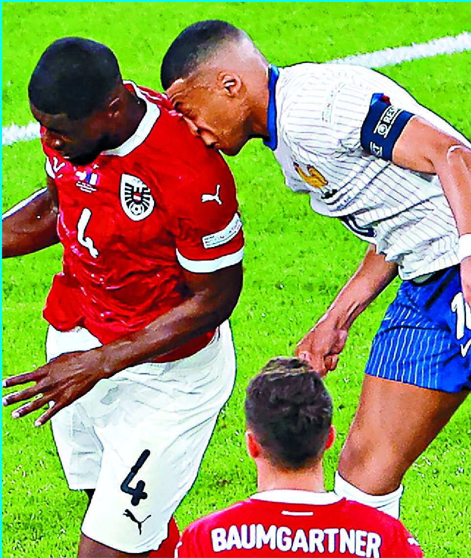Mbappe's head violently collided with the shoulder of Austria defender Kevin Danso as they competed for the ball in the air late in the Group D opener in Dusseldorf.