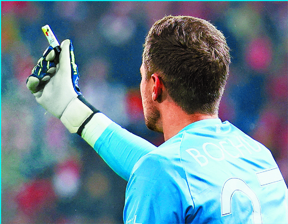 With the game level at 1-1 and added time ticking down, the 31-year-old was hit by a lighter thrown from the crowd and fell to the ground.